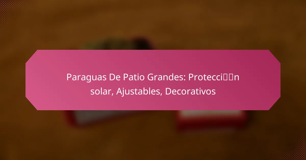 Los paraguas de patio grandes son estructuras diseñadas para proporcionar sombra y protección en áreas exteriores, como jardines o terrazas. Su tamaño y diseño permiten cubrir amplias zonas, ofreciendo comodidad y estilo al espacio al aire libre.